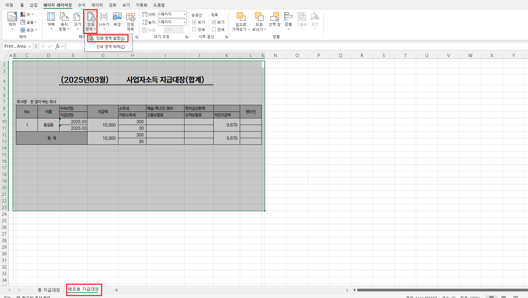 제가 직접 만들어서 사용하는 지급명세서 엑셀 양식입니다.